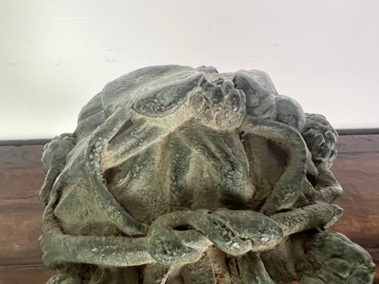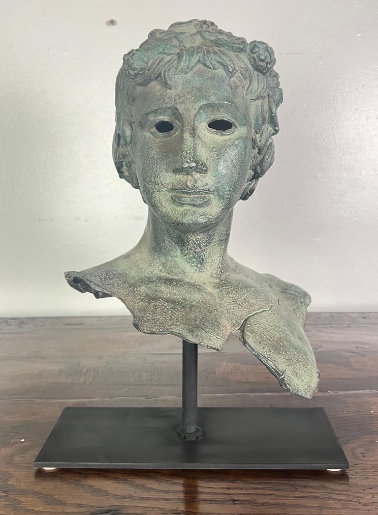 19th century French bronze head of a boy mounted on an iron base. It is a great accent for a side table or bookshelf.