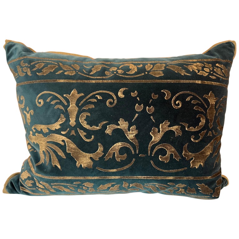 Gold Stenciled Green Velvet Pillow