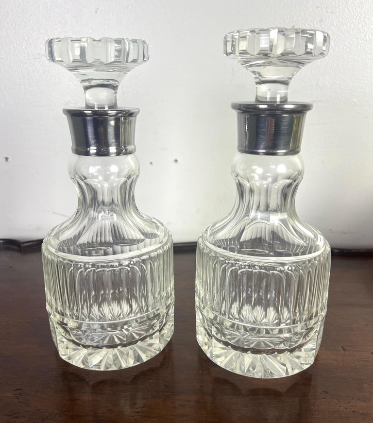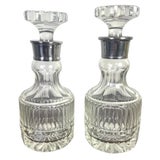 Pair of Cut Crystal & Silver Decanters C. 1930's