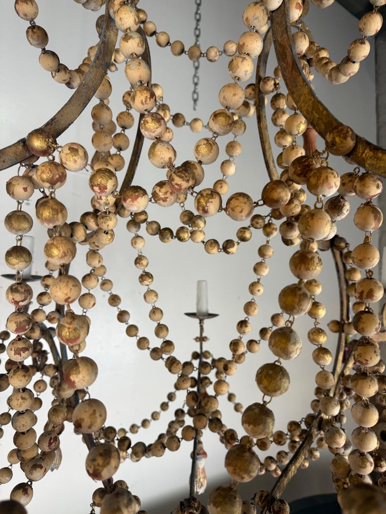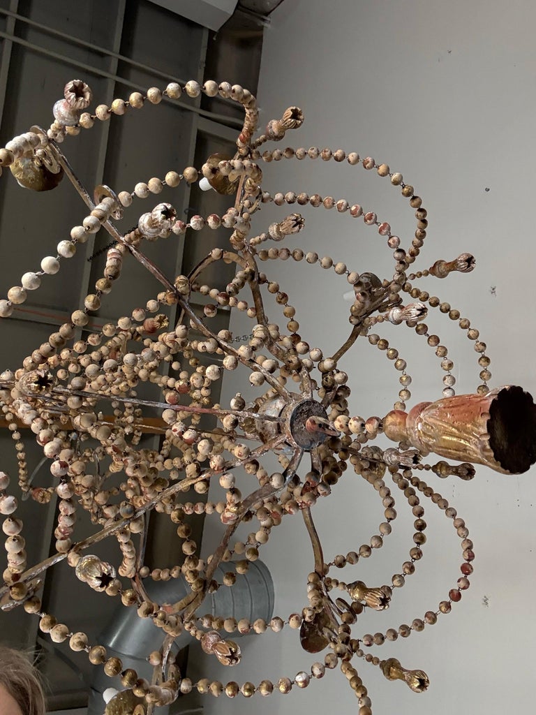 Monumental Italian Parcel-Gilt & Painted Wood-Bead Chandelier