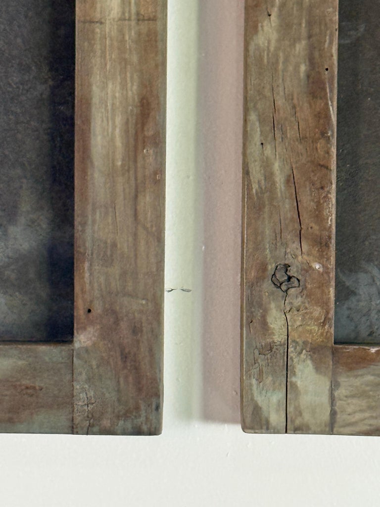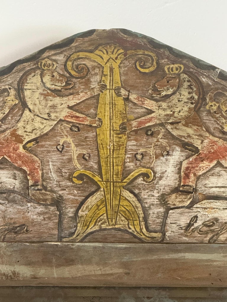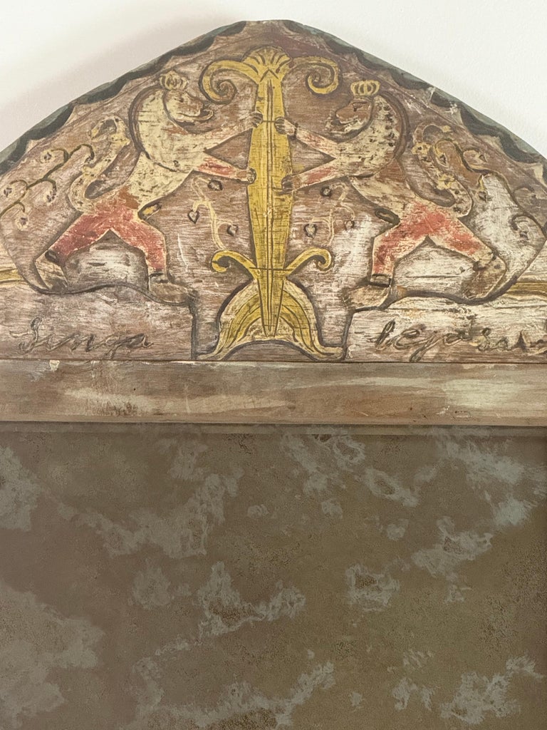 Pair of 19th Century Painted Folk Art Arched Mirrors with Heraldic Lion Crests
