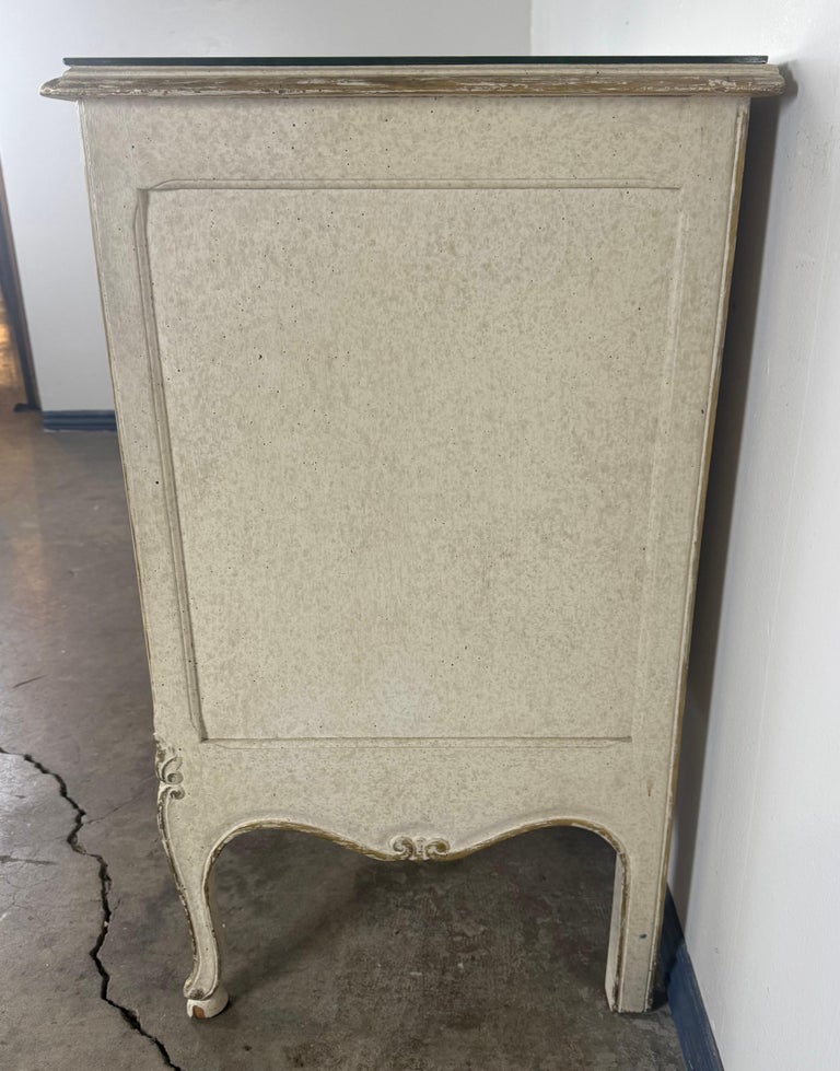 Pair of Louis XV–Style Painted Chests with Antiqued Marbled-Foxed Mirror Tops