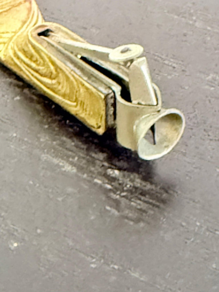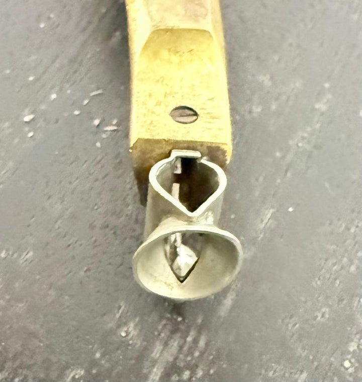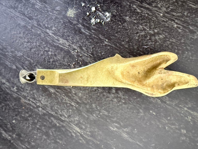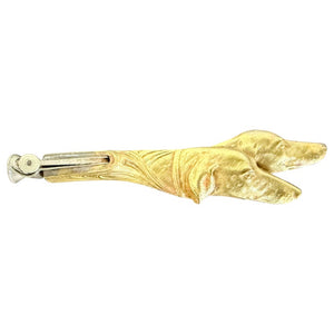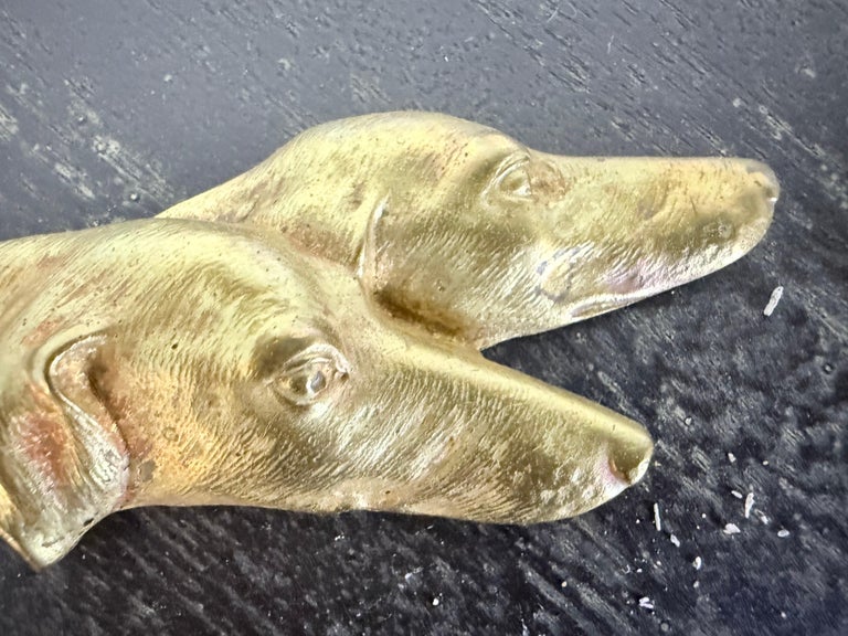 A finely cast antique cigar cutter featuring a sculptural handle in the form of two hunting dogs, likely hounds or pointers, rendered with lifelike detail and expressive features. Crafted from solid brass, this piece dates to the late 19th or early 20th century and reflects the sporting themes popular during the Victorian and Edwardian periods. The cigar cutter mechanism is mounted at the end of the handle and features a thumb-operated lever with a circular blade designed to cleanly cut the tip of a cigar. The weight and feel of the cast brass give the piece a satisfying heft, while the double dog motif adds a charming and uncommon decorative touch. A functional and collectible piece of tobacciana, perfect for display in a smoking room, library, or as part of a gentleman’s antique accessory collection.