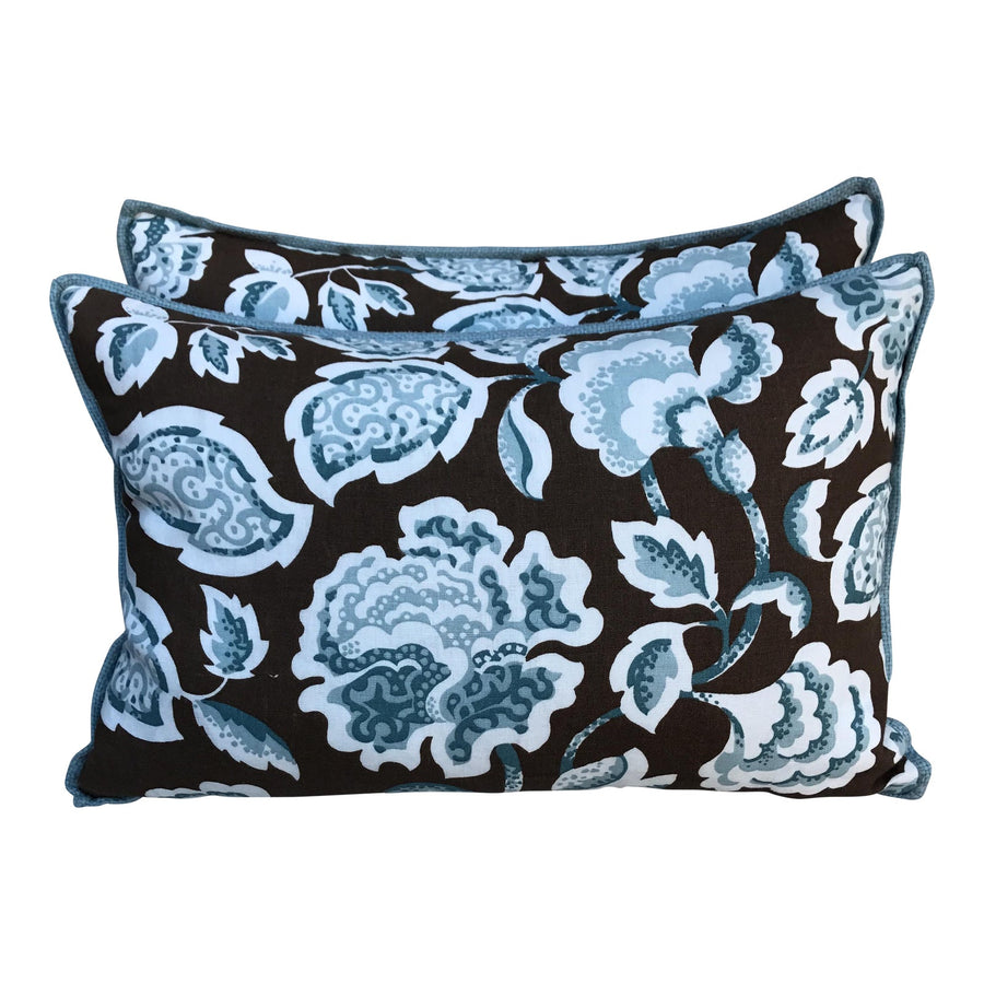 Brown & Blue Foral Pillows - a Pair