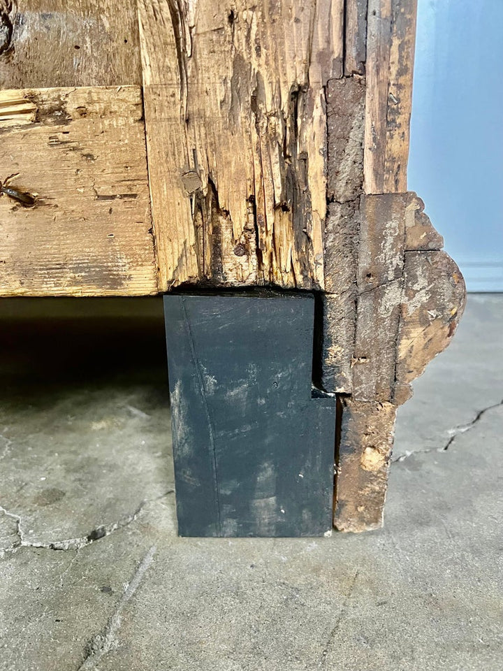 Refinished. Repaired: The back leg has been restored at some point but is solid. Wear consistent with age and use. The piece was bleached as well.
