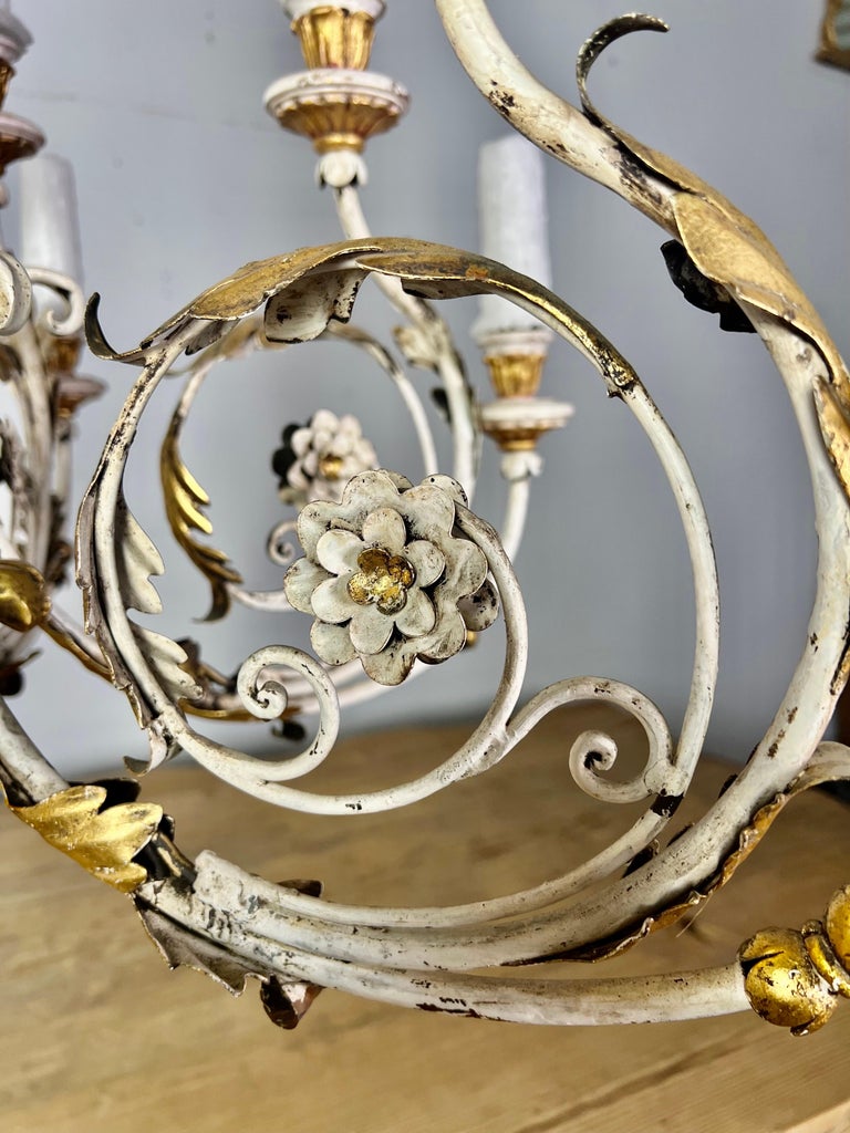 Italian Painted & Parcel Gilt Cherub Chandelier, circa 1930s