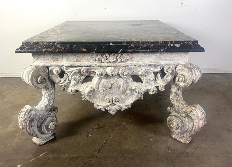 Monumental Painted Rococo Style Coffee Table w/ Marble Top