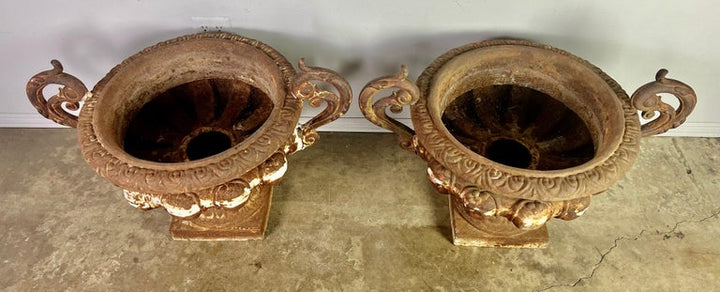 Pair of 19th Century French Cast Iron Urns