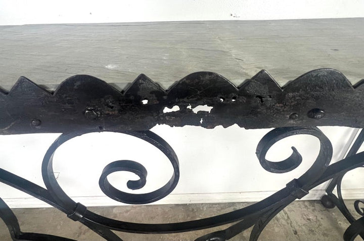 Spanish Wrought Iron Console w/ Sectioned Slated Top C. 1920