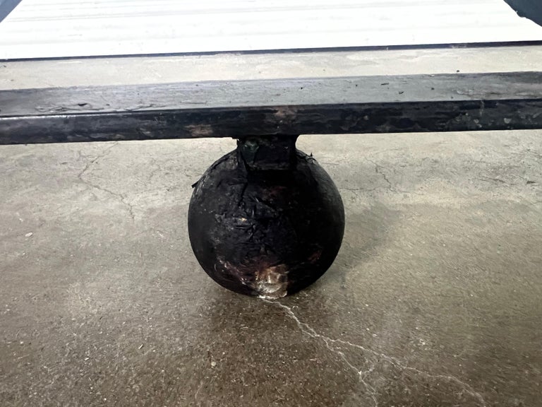 Wear consistent with age and use. Obvious wear to the apron on the wrought iron base.