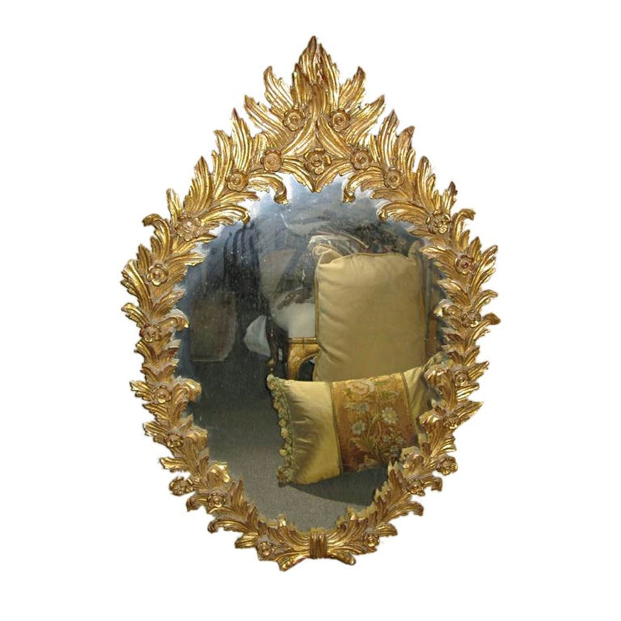Exquisite in every way, this Gilt Wood mirror from the 1930's is made from carved acanthus leaves and tiny flowers. Imagine this unique oval mirror in your powder room or small entryway.