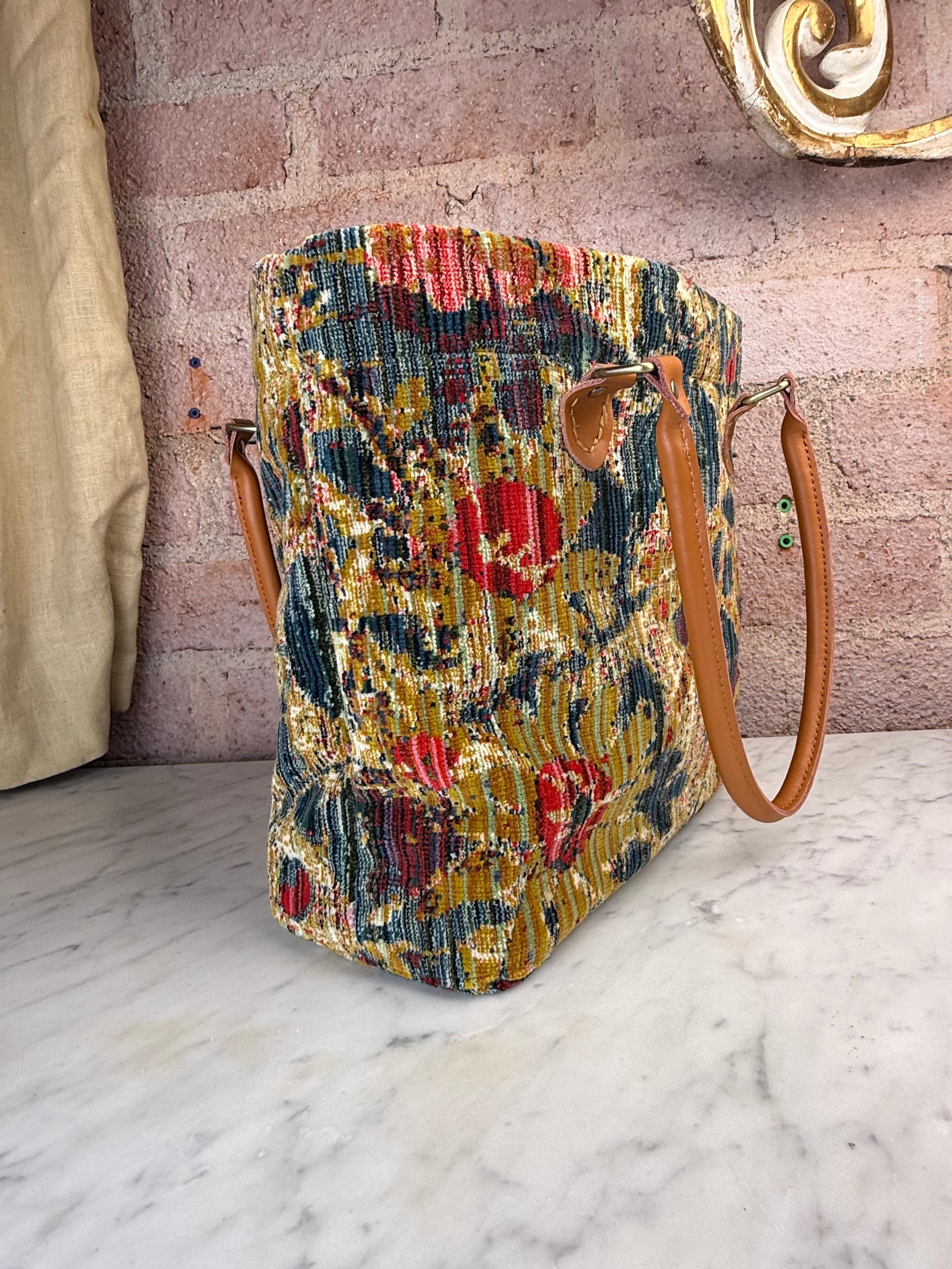 Floral Tapestry Handbag with Leather Handles by Melissa Levinson