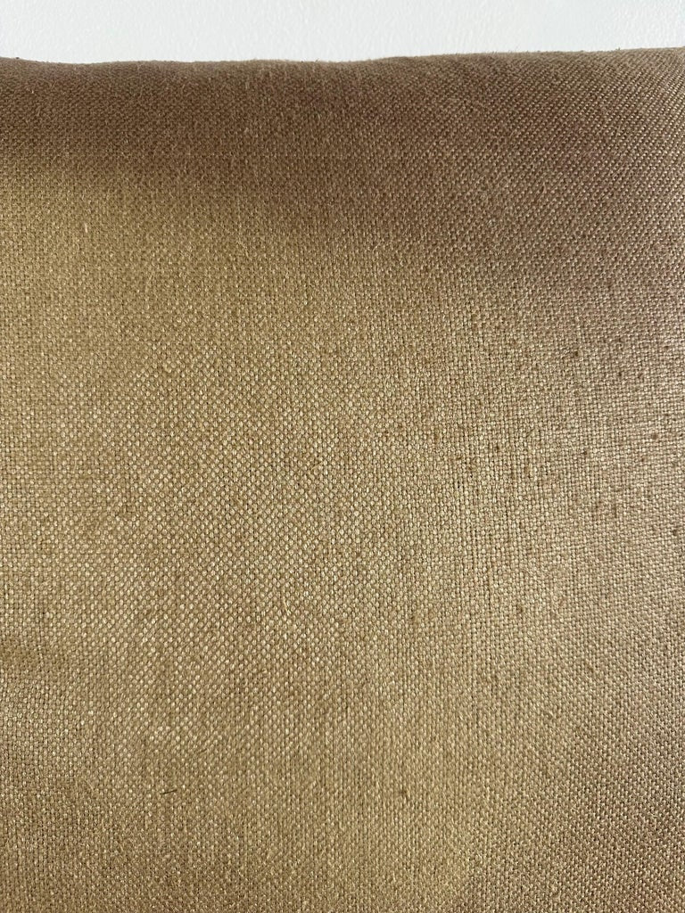 Decorative pillow made from a floral printed linen with an archival European feel, featuring flowering branches, blossoms, and birds in soft tones of rose, plum, olive, and taupe on a warm flax ground. The reverse is finished in a coordinating solid linen. Subtle piping detail and a plush down-filled insert complete the piece. A timeless accent well suited to traditional and collected interiors.