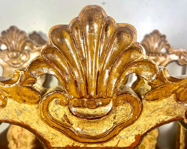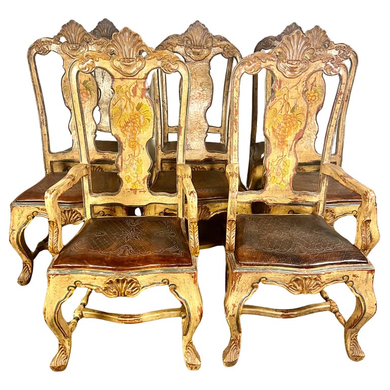 (8) French Provincial Hand Painted Dining Chairs w/ Leather Embossed Seats