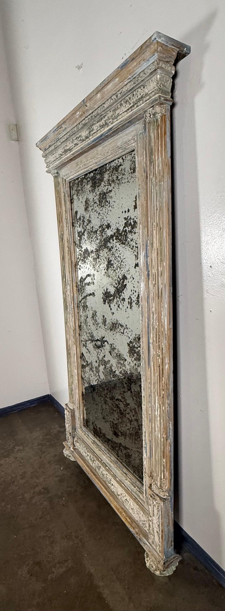 Large 19th Century French Neoclassical Trumeau Mirror with Aged Painted Finish