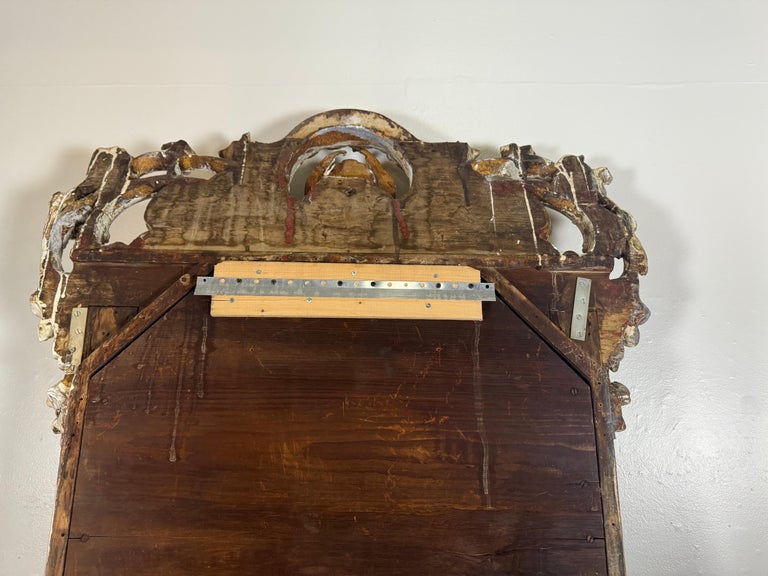 The original mirror plates show appropriate foxing and silver loss consistent with age. The backs reveal early hand-planed board construction with later sympathetic reinforcement for stability and secure mounting.