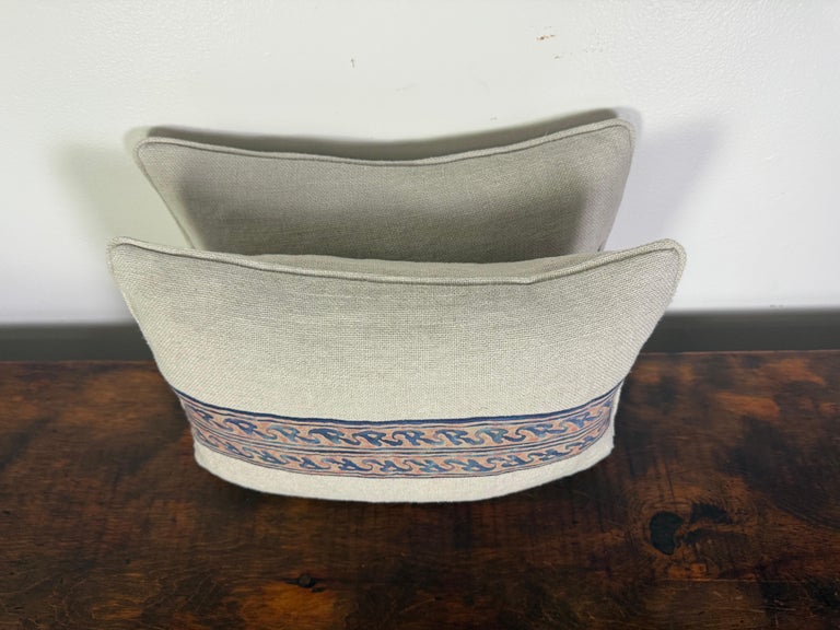 Pair of Petite Linen Pillows with Authentic Vintage Fortuny Stripe