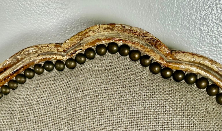 Recently upholstered in a neutral, textured linen with double welt and nailhead trim, the seats and backs are comfortable, clean, and ready for immediate use.